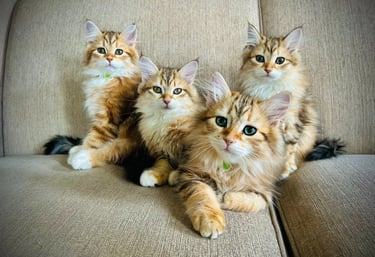 Our Cattery is located in the beautiful countryside of Southeast Iowa. We are committed to raising healthy, well socialized kittens from health tested parents. We take great care in developing their social skills and temperament and allowing for plenty of play with our children and other kittens in the home, as well as exposure to our hypoallergenic family dogs. We strive for well-rounded kittens that will have smooth transitions into their new home. We are also proud to offer door to door delivery and convenient airport pick up for our kittens.
